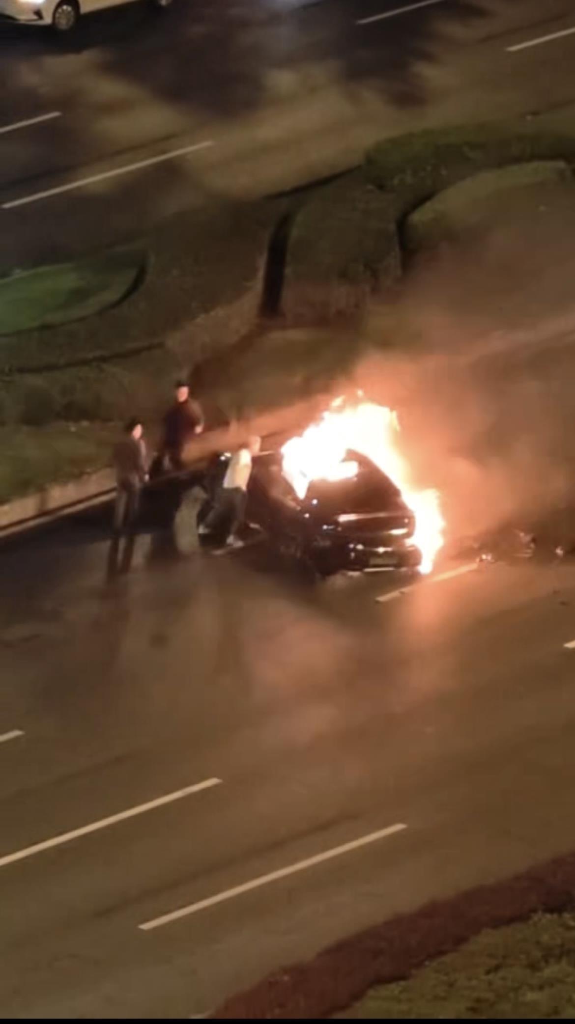 吉姆新闻记者王灿报道,10月13日凌晨,成都高新区天府大道与益州大道交叉口,一辆新能源汽车突然起火。目前受害者身份不明。整个过程被他跟随的汽车的行车记录仪记录了下来。视频显示,汽车在超速通过路口时失去控制并起火。白衣男子徒手将窗户打破。目击者在社交平台上发布了事发时他们身后汽车的摄像头拍摄的视频。视频显示,事件发生在13日凌晨3点16分。事故车辆当时行驶在天府街右车道。行经路口时,车辆左转避让前车时失控,撞到路中央,起火起火。当吉姆新闻记者询问时得知,限速成都天府街时速80公里。目击者称,13日一早,他们就听到楼下窗外有奇怪的声音。当他起身查看时,在天府街上发现了燃烧的尸体。当时,驾驶座上被困了一个人。许多路人试图打碎玻璃来帮忙,但没有成功,火势迅速蔓延。消防人员赶到后,首先使用高压水枪将火扑灭,随后使用工具将汽车切开施救。在一名市民发布的视频中,可以看到车头停在路边的花坛前,一侧可以看到非常大的火势。许多路人参与救援。有的试图打开车门,有的用脚踢门,还有的从车内拿出灭火器,还有一名身穿白大褂的男子急得徒手打破了车窗,但都失败了。火势迅速蔓延至整车。吉姆新闻记者注意到成都市高新区消防救援部门.官员称,消防队员抵达后不久就将火扑灭。当地警方尚未透露事件的具体情况。 13日10时许,吉姆新闻记者联系上成都高新区应急管理办公室。有关部门表示,接到相关信息称,一辆新能源汽车起火。有关部门尚未通报具体情况。目前我们正在与消防部门和交警局协商。目前事故原因和后果尚不清楚。车内人员受伤或死亡。