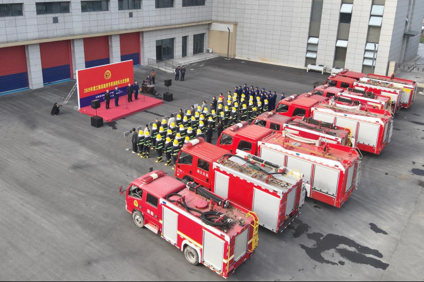 荆中网讯(湖北日报)(通讯员 陈源)2025年度市政府专职消防员比武近日在荆州市冈陵县举行。 9名地方政府专职消防队和1名县内企业专职消防队同台展示各自优势,比拼速度和技巧。